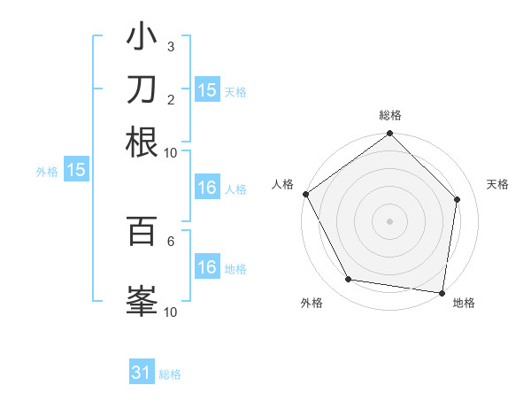小刀根 百峯さんを姓名の画数から五運を鑑定