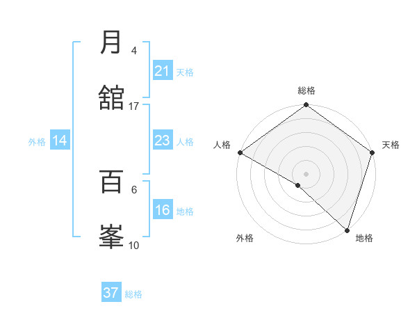 月舘 百峯さんの総格は37画の5点!