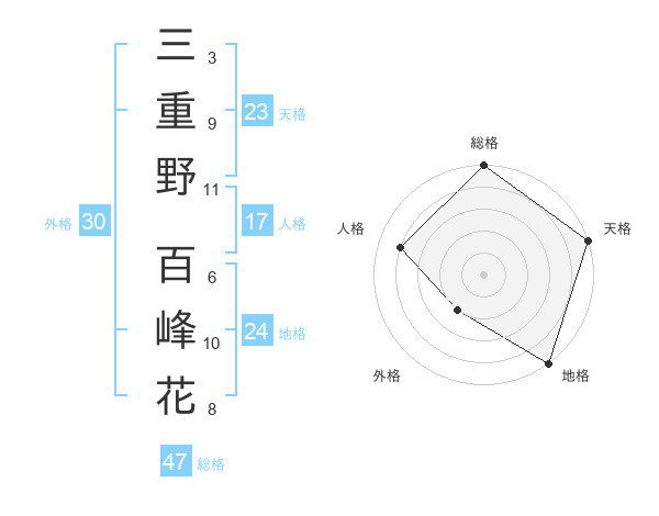 三重野 百峰花さんを姓名の画数から五運を鑑定