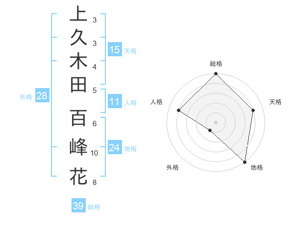 上久木田 百峰花さんを姓名の画数から五運を鑑定