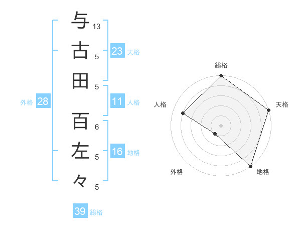与古田 百左々さんを姓名の画数から五運を鑑定