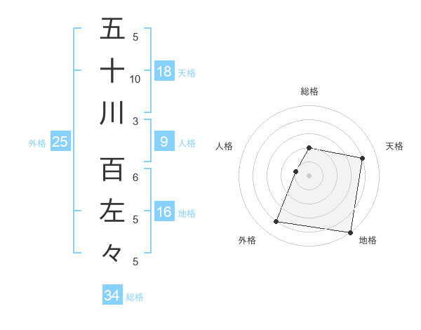 五十川 百左々さんを姓名の画数から五運を鑑定