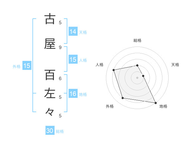 古屋 百左々さんを姓名の画数から五運を鑑定