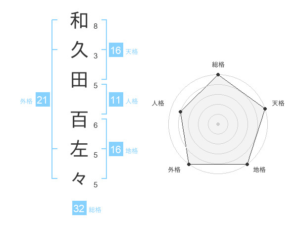 和久田 百左々さんを姓名の画数から五運を鑑定