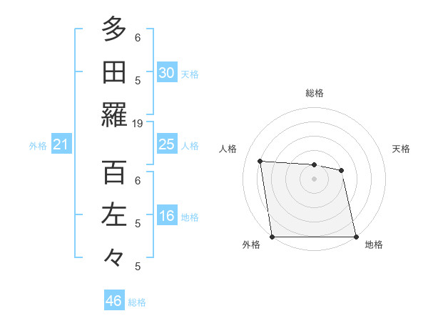 多田羅 百左々さんを姓名の画数から五運を鑑定