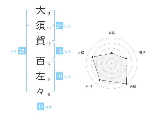 大須賀 百左々さんを姓名の画数から五運を鑑定