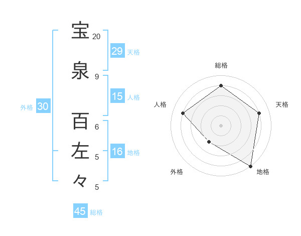 宝泉 百左々さんを姓名の画数から五運を鑑定