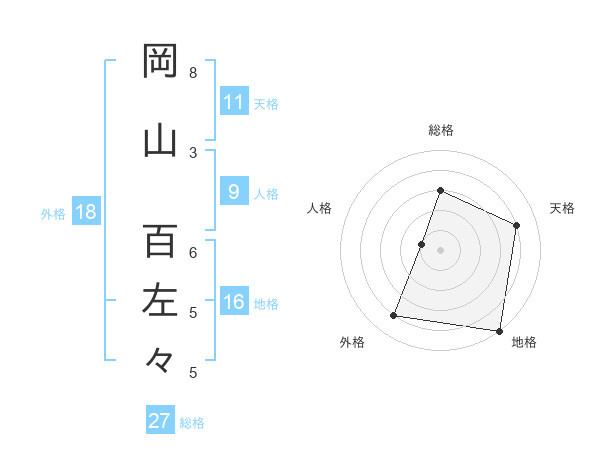 岡山 百左々さんを姓名の画数から五運を鑑定