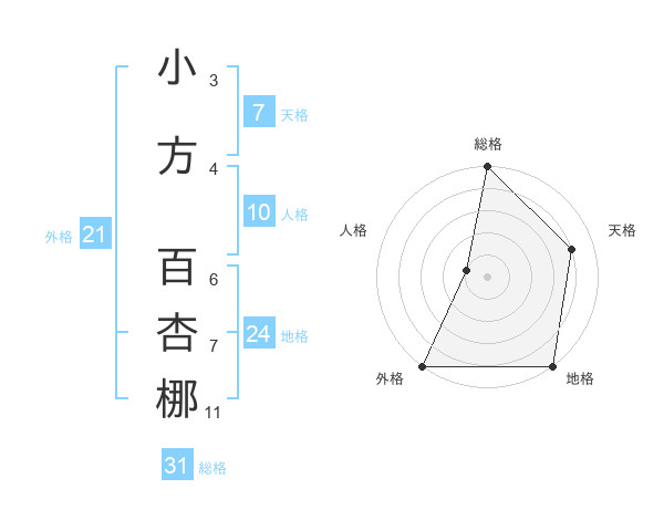 小方 百杏梛さんを姓名の画数から五運を鑑定