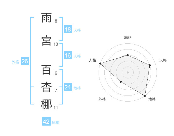 雨宮 百杏梛さんを姓名の画数から五運を鑑定