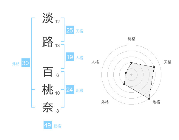 淡路 百桃奈さんを姓名の画数から五運を鑑定