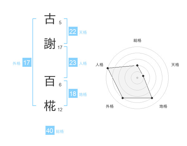 古謝 百椛さんを姓名の画数から五運を鑑定