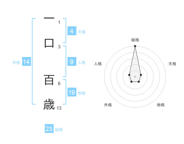 一口 百歳さんの総格は23画の5点!