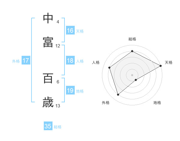 中富 百歳さんの総格は35画の4点!