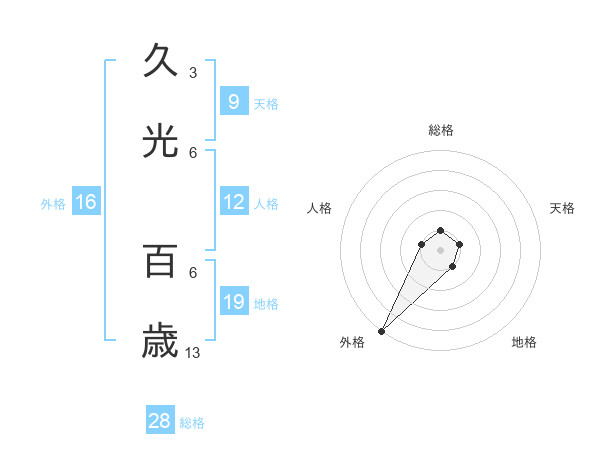 久光 百歳さんの総格は28画の1点!