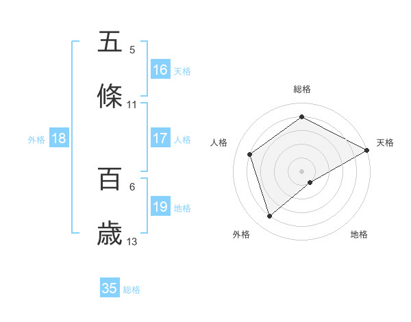 五條 百歳さんの総格は35画の4点!
