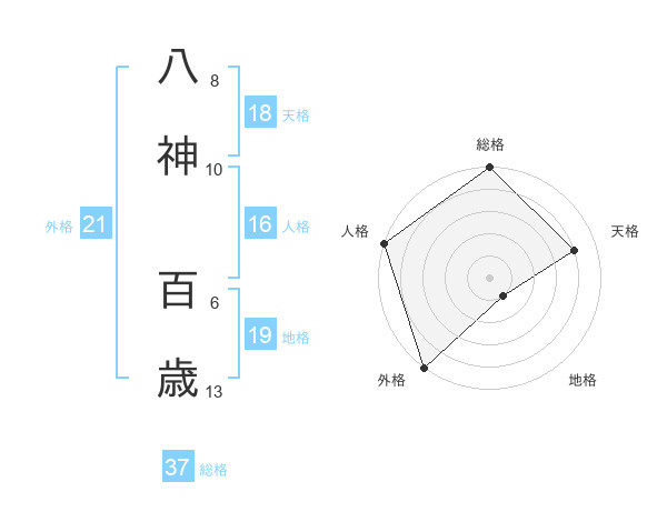 八神 百歳さんの総格は37画の5点!
