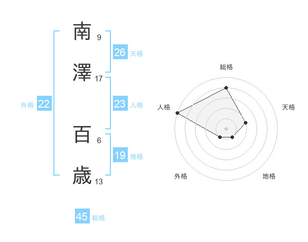 南澤 百歳さんの総格は45画の4点!