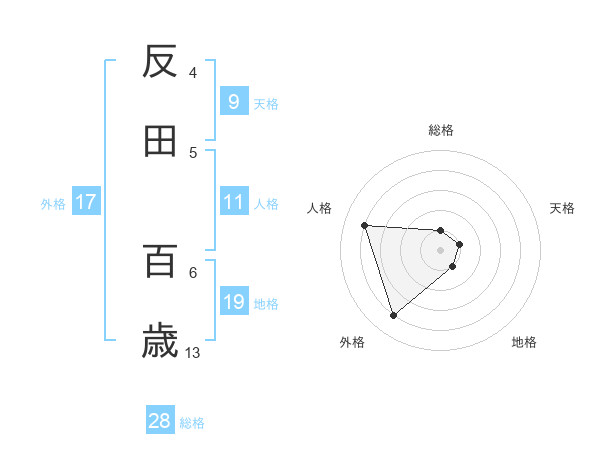 反田 百歳さんの総格は28画の1点!