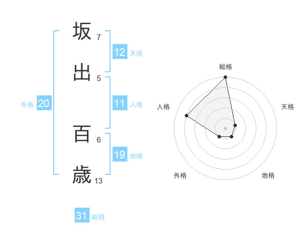 坂出 百歳さんの総格は31画の5点!
