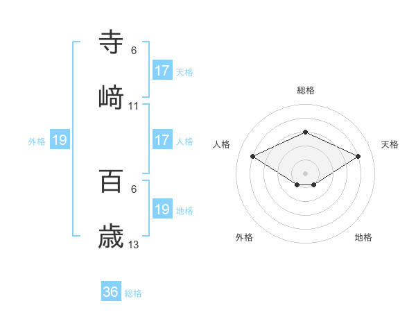 寺﨑 百歳さんの総格は36画の3点!