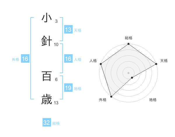 小針 百歳さんの総格は32画の5点!