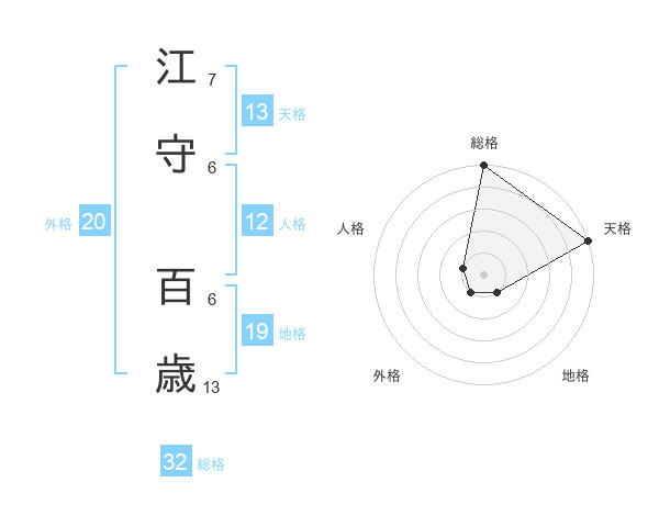 江守 百歳さんの総格は32画の5点!