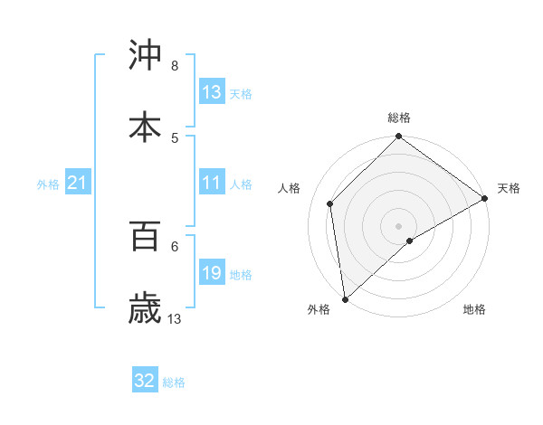 沖本 百歳さんを姓名の画数から五運を鑑定