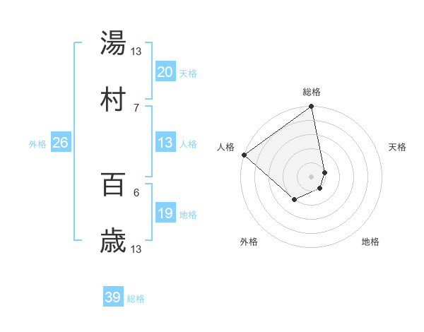 湯村 百歳さんの総格は39画の5点!