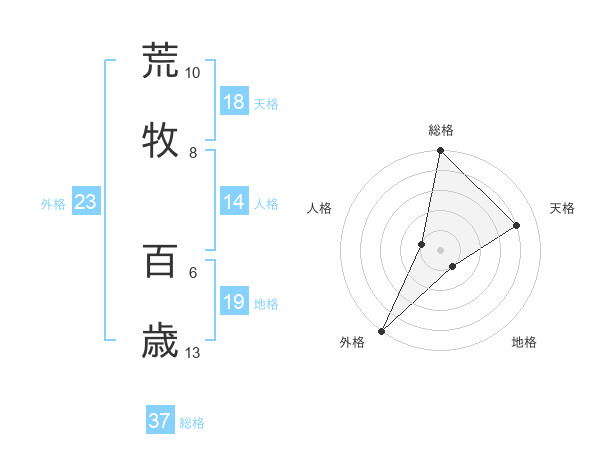 荒牧 百歳さんの総格は37画の5点!