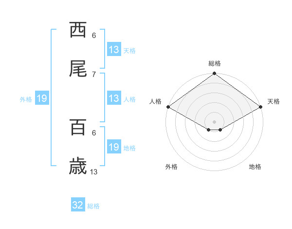 西尾 百歳さんの天格は13画の5点!