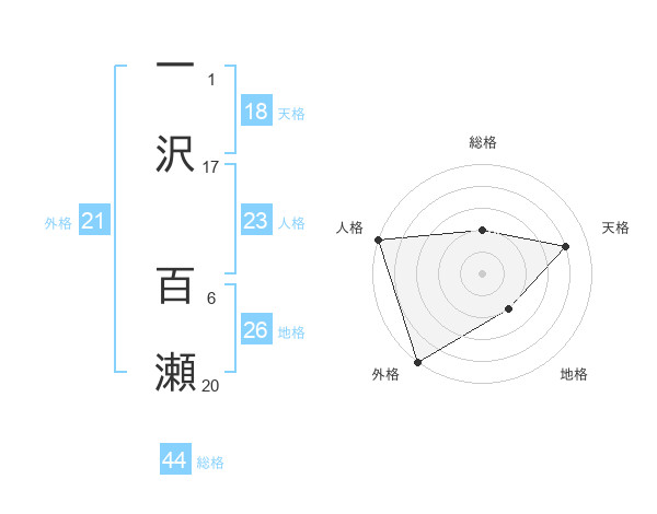 一沢 百瀬さんの総格は44画の2点!