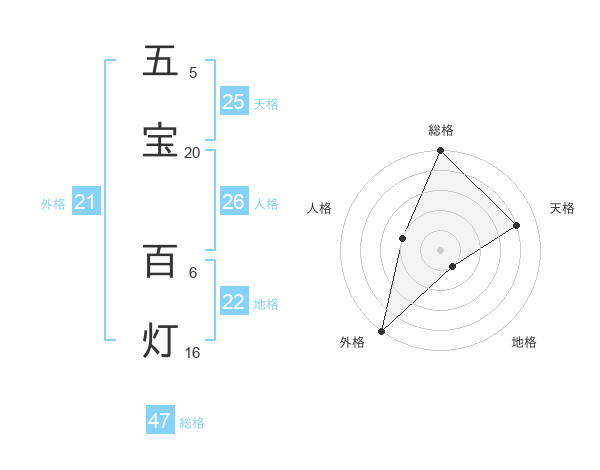 五宝 百灯さんの外格は21画の5点!