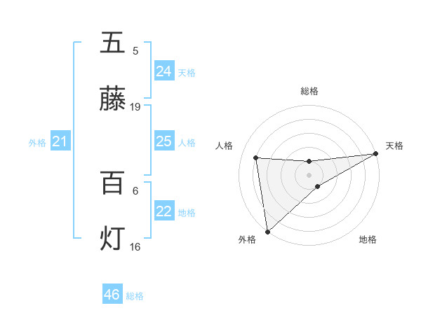 五藤 百灯さんを姓名の画数から五運を鑑定