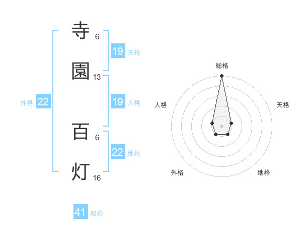 寺園 百灯さんの地格は22画の1点!