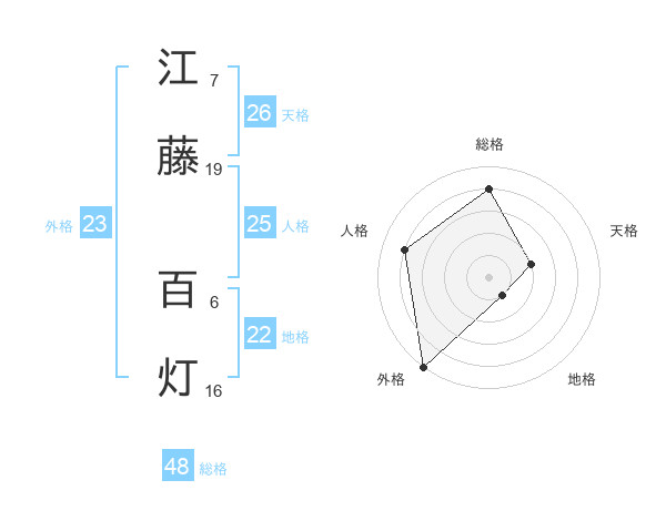 江藤 百灯さんを姓名の画数から五運を鑑定