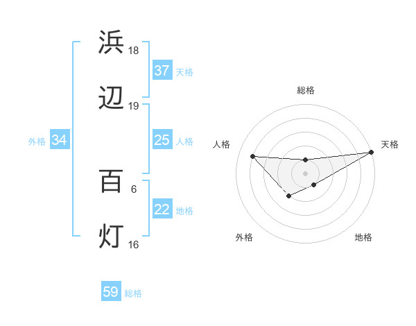 浜辺 百灯さんを姓名の画数から五運を鑑定