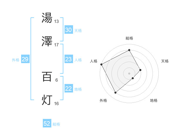 湯澤 百灯さんを姓名の画数から五運を鑑定