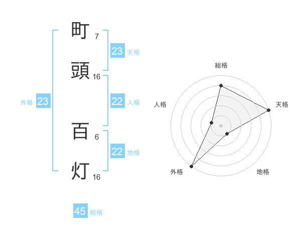 町頭 百灯さんの外格は23画の5点!