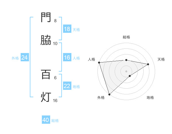門脇 百灯さんを姓名の画数から五運を鑑定