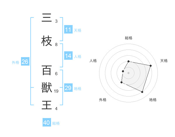 三枝 百獣王さんを姓名の画数から五運を鑑定