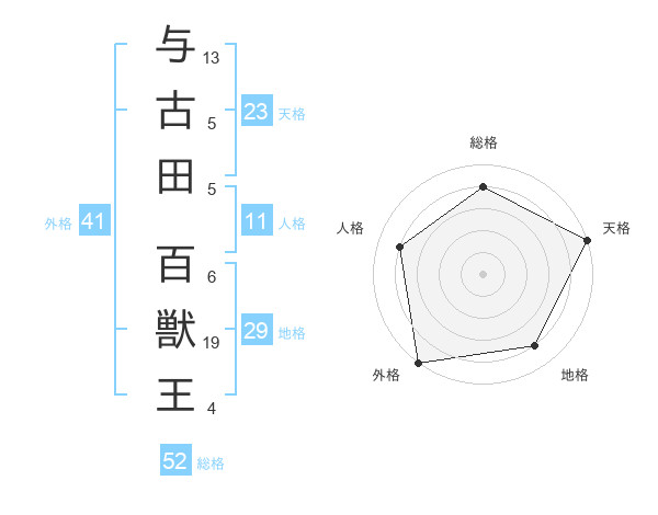 与古田 百獣王さんを姓名の画数から五運を鑑定