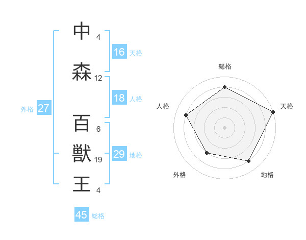 中森 百獣王さんを姓名の画数から五運を鑑定