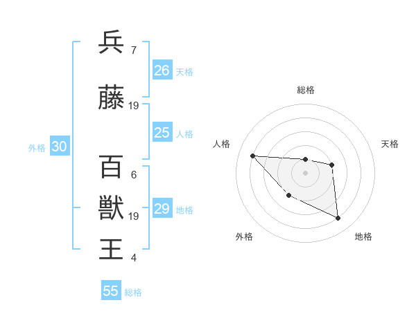 兵藤 百獣王さんの総格は55画の1点!