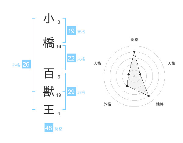 小橋 百獣王さんを姓名の画数から五運を鑑定
