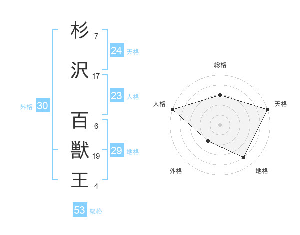 杉沢 百獣王さんの総格は53画の3点!