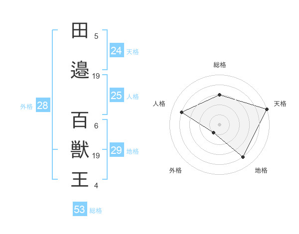 田邉 百獣王さんを姓名の画数から五運を鑑定