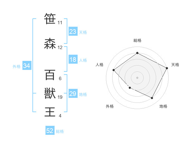 笹森 百獣王さんの総格は52画の4点!