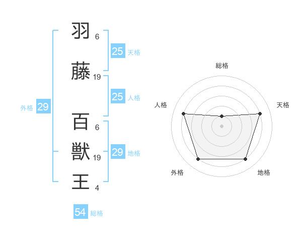 羽藤 百獣王さんを姓名の画数から五運を鑑定