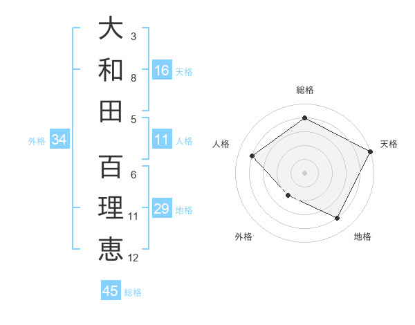 大和田 百理恵さんを姓名の画数から五運を鑑定